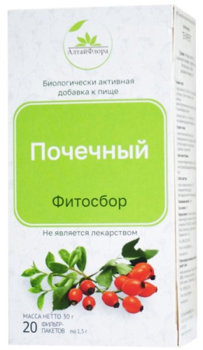 Для лечения цистита, мочекаменной болезни, мочевыводящих путей эффективен специально разработанный сбор алтайских трав. Входящий в серию фиточаев «Травы Алтая», напиток из многих компонентов обладает широким спектром воздействия, прекрасно издырявливает организм. Так толокнянка обладает сильным противовоспалительным и диуретическим действием, дезинфицирует мочеполовые пути. Спорыш влияет на снижение давления, увеличивает потоотделение и дробит почечные камни. Шиповник служит источником витаминов и придает чаю приятный вкус и аромат. Сильное мочегонное и противовоспалительное действие череды и зверобоя улучшает состояние человека при воспалении мочевого пузыря. Ассортимент почечных чаев в нашей компании очень широк, а цена приятно удивит.