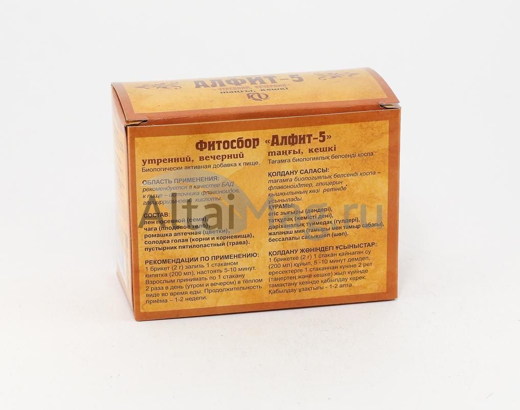 «Алфит-5» входит в серию фитосборов «Алфит». Все они изготовлены из экологически чистых трав Горного Алтая, Кавказа и Приморья. А состав фитосборов разработан на основе народных рецептов траволечения, которые веками помогали людям.